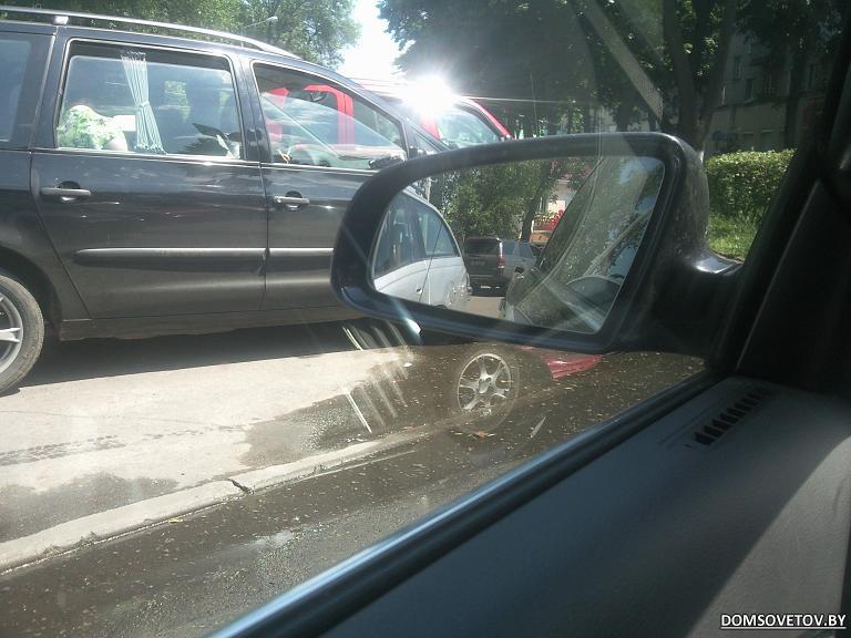 Выходной день... парковка возле рынка... мест нет... Рядом со мной выехало авто, видны свеженькие следы....чтоб никто не занял место его перекрывает опель (виден в зеркало), но не паркуется, а треплется по телефону.