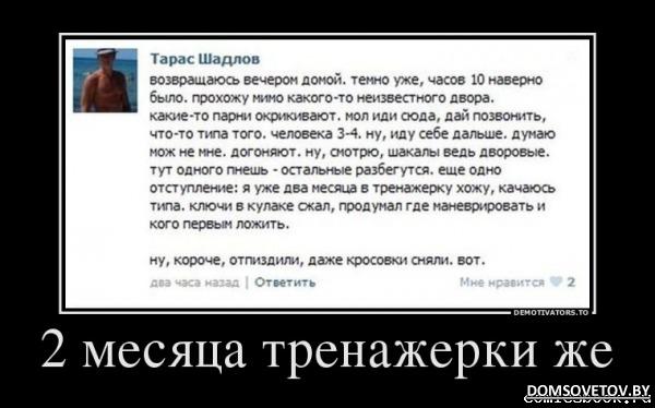 «Что? Опять????!» - возмутился Опыт. «Хе…снова из-за меня )))» - улыбнулась Причина. «Нет! Из-за меня!!!!» - поспорила Гордость. «А может… не надо ?» - пролепетала Осторожность. «Осторожность, иди в ж..пу!» - гаркнула Храбрость. «Я закрыта на приключения!» - отмазалась Ж..па. «А вот и я!» - объявила Решительность. «Куда это без меня?» - вопросило Опьянение. «Без тебя уже никуда…» - ответило Спокойствие. «А может лучше завтра?» - поинтересовалось Сомнение. «Сегодня или никогда!» - отрезало Упрямство. «Главное только не как вчера!» - предупредила Обыденность. «Вчерашнее не повторится!» - успокоила Глупость. «Всё будет по-другому!» - соврало Предчувствие. «На что-то это похоже…» - задумалась Память. «С.ки вы все…» - вставая и отряхиваясь процедила сквозь зубы Мечта. |