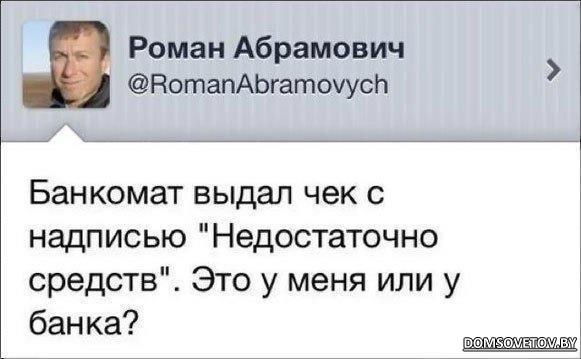 На встрече Медведева с Цукербергом. - Давеча встречался с Мясниковичем. - Who is Miasnikovich? (набирая фамилию в фэйсбуке). - Год назад он возглавлял Академию наук Беларуси. - Что обсуждали? - Да он тут придумал схему по растворителям. - Изобретатель? - Если бы он был на это способен в одиночку. Изобретатели, блин. |