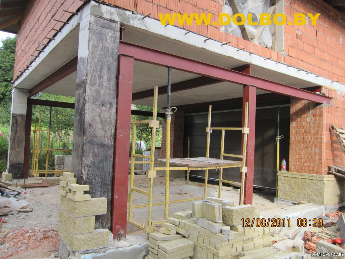 Необходимо сделать дверной проем 900х2100мм в несущей кирпичной стене шириной 380мм. На стену опирается плиты перекрытия кровли ПК63.15-6 с одной стороны и ПК 36.15-6 с другой.