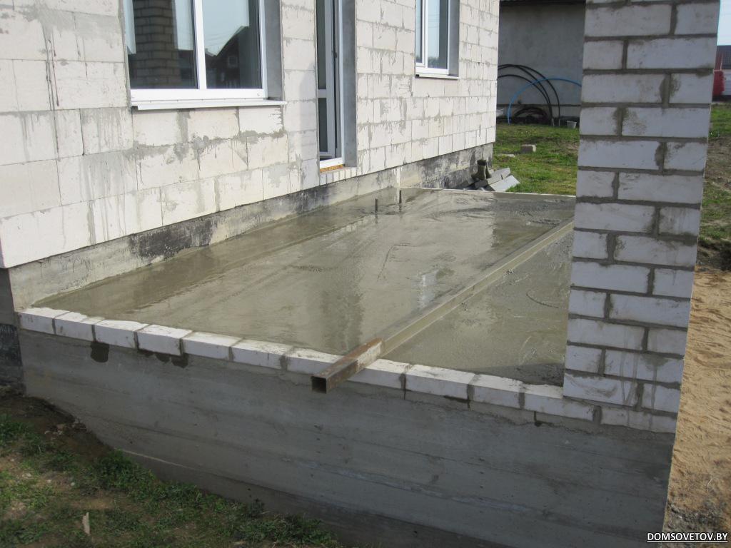когда планировал террасу то сначала думал что сделаю облегченную конструкцию на свайном фундаменте с лагами и досчатым покрытием в результате - монолитный фундамент на глубину промерзания и перекрытие бетоном с арматурной сеткой. ))) если бы сейчас делал то однозначно делал бы на сваях. ширина террасы чуть больше 4 метров. побоялся заливать сверху плиту без центральной опоры. в центре тоже залил полосу фундамента... |