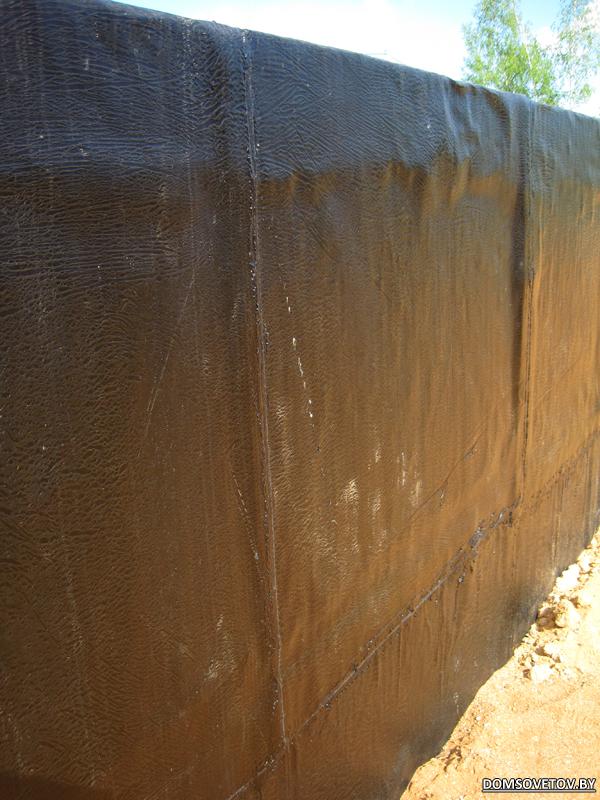 Фото вылажу на работе, дома глюк на ноуте фотик не видит. клеил частями (3 куска в высоту) с нахлестами, из них 2.5 меьра засыпал, осталось на высоте до метра, клеил с нахлестом, мастики 2-3 слоя, не жалел, на 20м2 посшло 3 бочки по 50 кг, 4 ведра праймера по 20, и еще пару ведер по 20. Просто были мои фотки, когда почти половину бочки пришлось выкинуть, т.к после зимы все отвалилось. Строители говорят, что отвалится от морозов, т.к смола может отходить.