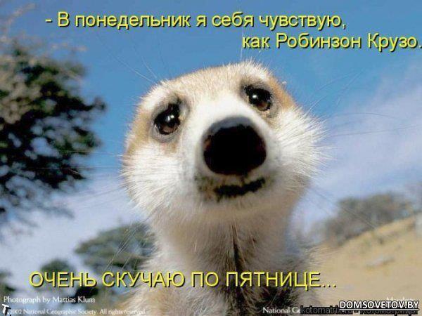 - А где вы были? - В Индии... *** Муж с женой занимаются контрабандой животных. Собираются переправляться через границу. Муж говорит жене: -Значит так, змей положишь в щляпу, черепах в лифчик засунишь, а скунса-в трусы. Жена: - А как же запах? Муж: - Ну сдохнет, так сдохнет. Если папа посидел с ребенком один день, то он устал, а если мама сидит с ребенком 3 года, то она ничего не делает. Месяц за рулем не была. Все сигналят, светом моргают, руками машут: соскучились черти )) |