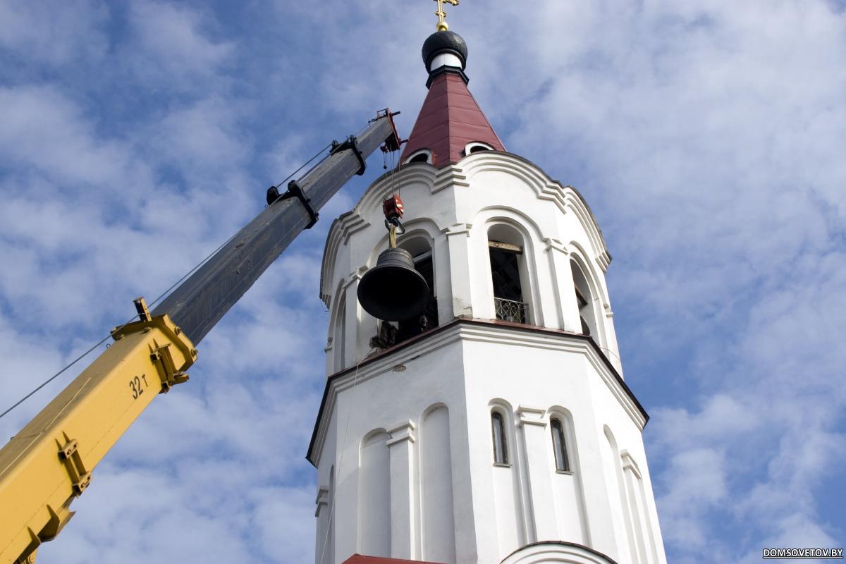 Монтаж колоколов на колокольню Храма Покрова Пресвятой Богородицы.