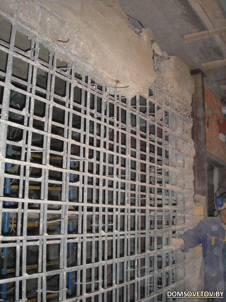 Устройство проемов в несущих конструкциях с монтажом металлоусиления по проектной документации.