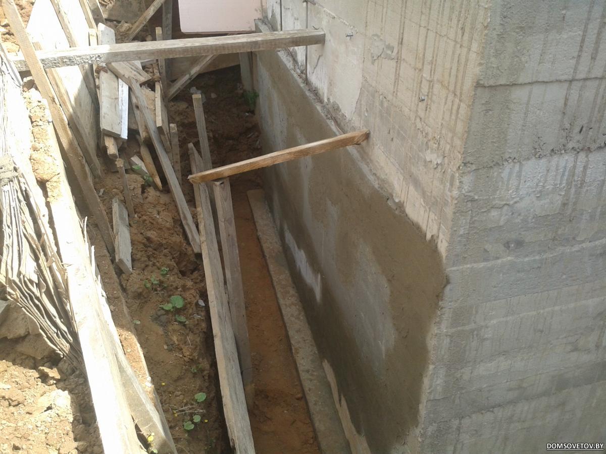 Подушка шире стен (если по проекту конечно строить) на 10см минимум, а местами и на 20-30см. |
