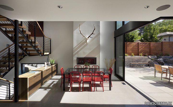 Этот современный дом для молодой семьи разработала компания "Dihedral House" и был построен в центре одного городка в американском штате Колорадо. Дизайнеры не плохо потрудились и получили хорошую смесь бетона, дерева и стекла. http://www.domsovetov.by/picture.php...pictureid=5630 http://www.domsovetov.by/picture.php...pictureid=5631 http://www.domsovetov.by/picture.php...pictureid=5632 http://www.domsovetov.by/picture.php...pictureid=5633 Есть какая-то любовь американцев к рогам на капоте автомобилей, но рога на стене дизайнерского домика не совсем понимаю. Хотя им виднее зачем им рога ;) http://www.domsovetov.by/picture.php...pictureid=5634 http://www.domsovetov.by/picture.php...pictureid=5635 http://www.domsovetov.by/picture.php...pictureid=5636 Не знаю что там за молодая семья собралась жить, но гараж для велосипедов впечатляет ;) |