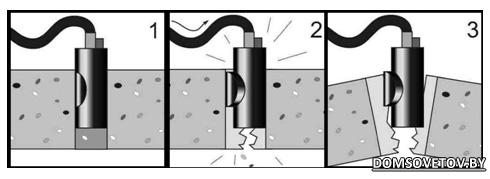 Применение гидравлического железобетонолома в сочетании с технологиями алмазного бурения, на сегодняшний день является самым цивилизованным и эффективным способом произведения таких операций, как демонтаж стен и разрушения бетонных конструкций больших размеров. Такая технология демонтажа стен позволяет совершенно бесшумно демонтировать массивные бетонные сооружения даже внутри здания, в непосредственной близости от проживающих здесь или работающих людей. Исторически известный человечеству принцип расширяющихся деревянных клиньев, вбитых в трещину камня и поливаемых водой, помноженный на современные технологии дает просто поразительные по эффективности результаты. Армированный железобетон, природный строительный камень, в том числе – гранит: диапазон применения метода гидропоршневого разрушения (гидроперессования) практически ничем не ограничен. http://www.domsovetov.by/picture.php...&pictureid=883 Гидравлический железобетолом представляет собой механизм разрушения без пыли, громкого шума, различных вибраций и массивной техники. Более 30 лет данный вид разрушения пользуется успехом в более чем 80-ти странах мира. Технология Стандартная техника разрушений использует внешние нагрузки при выполнении работ, что заставляет материал сопротивляться, то есть качество работ заметно ухудшается. Технология, которой используется в гидравлическом железобетоноломе, позволяет использовать прочность бетона или камня на расширение. http://www.domsovetov.by/picture.php...&pictureid=884 Для применения гидравлического железобетонолома при демонтаже стен в массиве бетонной конструкции предварительно выбирают места для сверления отверстий под установку пресс-цилиндров, представляющих собой обойму с выдвигающимися из нее поршнями двойного действия, на которые под давлением подается масло. Методом алмазного бурения, сверлятся отверстия диаметром 120-200 мм, куда вставляются гидравлические расширяющиеся цилиндры. После установки пресс-цилиндров под давлением происходит выход поршней из обоймы. Рабочее давление составляет 3000 бар, усилие на четырех пресс- цилиндрах - 1200 т. Комплект таких цилиндров, с давлением в 1200 тонн, способен разорвать и сам бетонный массив, и усиливающую его арматуру диаметром до 40 мм, с шагом армирования в 150 мм. Устоять перед таким давлением в процессе демонтажа стен просто невозможно. Бетонные и железобетонные массивы при таких усилиях раскалываются на отдельные куски. Преимущества метода К важнейшим преимуществам использования железобетонолома можно отнести отсутствие вибраций, характерных для ударных способов разрушения бетона. Разрушение бетона гидравлическим бетоноломом и демонтаж стен происходят совершенно бесшумно, что позволяет применять эту технологию даже в жилых домах. Можно без опаски находиться рядом с работой, не боясь отлетающих мелких элементов, а также ударов или вибрации. Использование железобетонолома не ведет за собой появление пыли, а также шума, что позволяет работать как внутри жилых помещений, так и рядом с ними. Кроме того, эта технология демонтажа стен является самым безопасным способом разрушения бетона – отрывающиеся осколки, крошка и обломки бетона полностью отсутствуют. По затратам энергии гидравлический железобетонолом является абсолютным лидером экономичности, относительно ударных типов инструмент