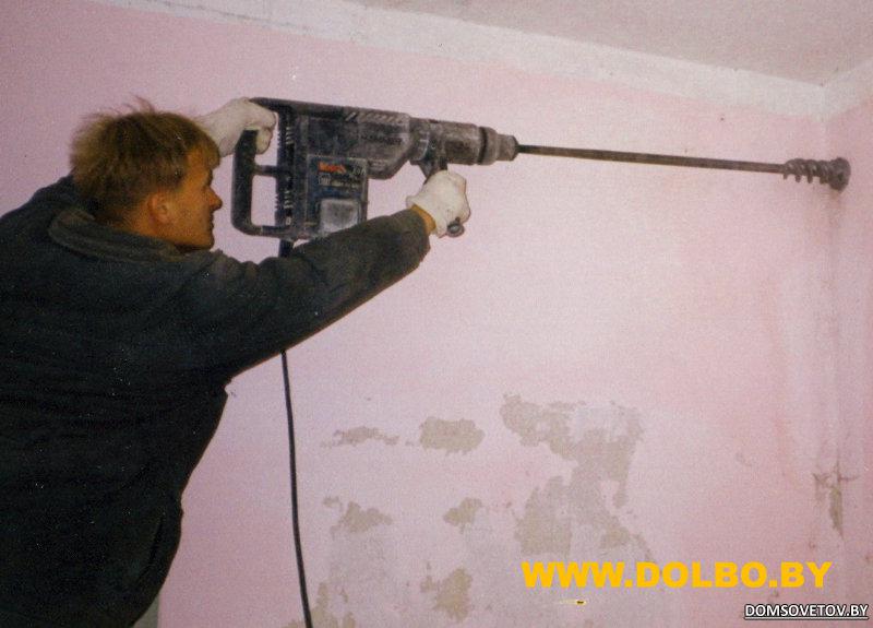 Бурение отверстий под коммуникации бурами и коронками SDS MAX.