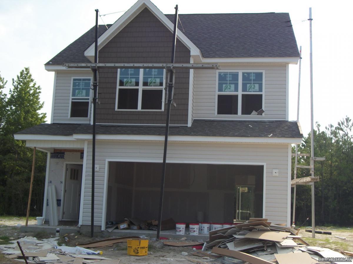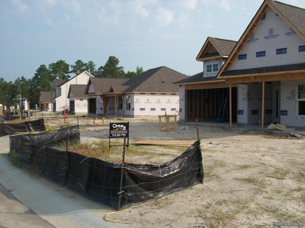 Приезжала свояченица летом и привезла мне для общего развития немного фото. Итак, начнем. Город Ждексонвилл, штат Северная Каролина. Пускай не пугает слово северная, климат теплый, зимой отрицательных температур не бывает. Строится сразу целая улица. Сразу скажу с домами там никто не парится. Не снимая никакого грунта выставили опалубку и залили плиты, предварительно подведя все коммуникации.