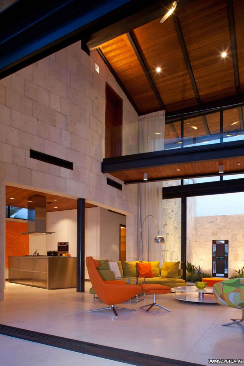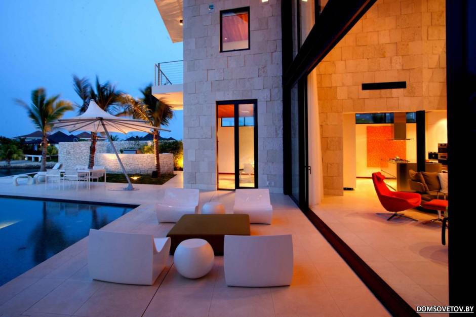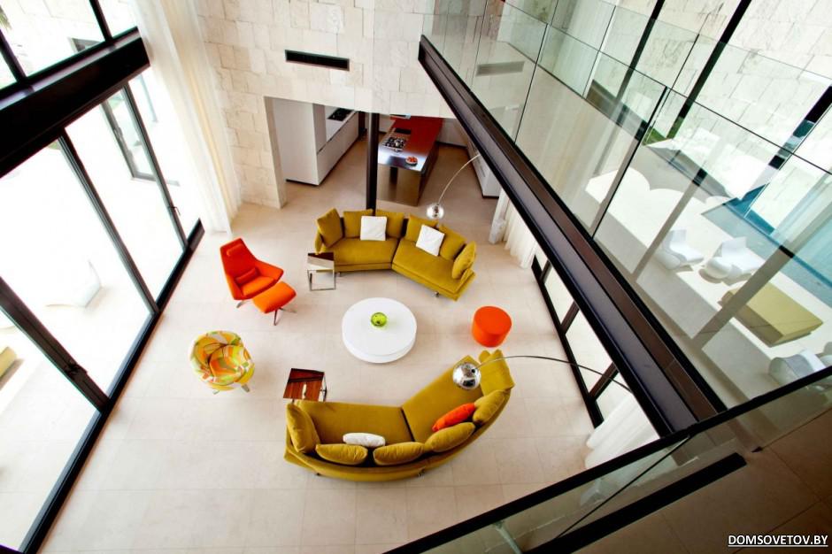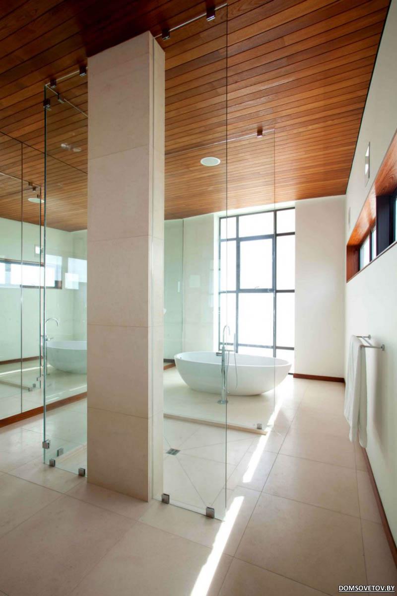 Если хотите что-либо взять из этой и другой подобной действительно красивой архитектуры для проектирования собственного уютного жилья, учитывайте не только то, что стекло в ванной за собой вытирать придется, но и то, что зимой у нас бывает снег и мороз.