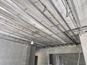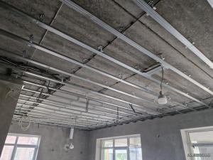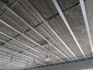 Начали делать потолки. Шаг продольных профилей 40см, подвесы через 75см, крепление несущего профиля к стене через 50см. Поперечных перекладин мне говорили что не надо помимо стыков гипсокартона при таком шаге продольных несущих профилей, но пообщался с mikola и попросил еще добавить поперечин по схеме.