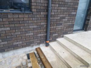 Когда сейчас вода падает с высоты 4м то брызг много, но когда будет 15см до дождеприемника + колено с отводом от дома то мне кажется там вообще не будет никаких брызг.
