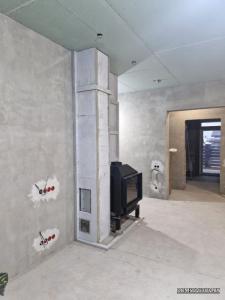 Эскизы это хорошо, но все равно на месте когда делается разметка то вносятся коррективы. Нюансов хватает: стандартный шибер не подходит из-за расположения подвода воздуха из пола + высоты подставки, от дровницы отказался потому что есть отступы которые надо соблюсти и так далее. Но постепенно все вопросы проясняются и процесс идет.