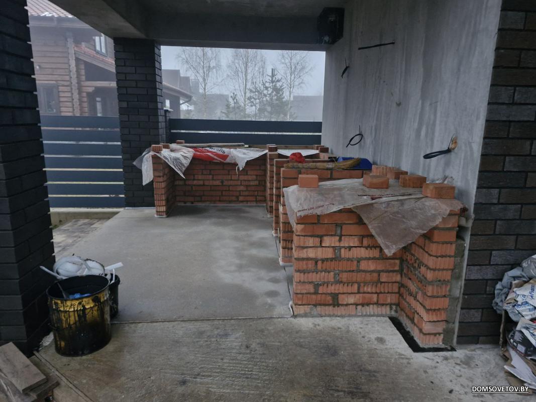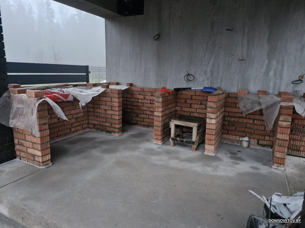 Выложил зону барбекю. Пока пауза до весны. Весной буду учиться штукатурить эти стеночки, затем бетонная столешница с нишей под мангал и погоню кирпич по стене бани до перекрытия чтобы на него выше столешницы можно было наклеить плитку. Стенка бани к которой примыкает данная зона была утеплена ватой на которую нельзя клеить плитку. Мысли на момент утепления были такие что если будет жар от мангала то стены нельзя утеплять пенопластом. Но у меня есть остатки плитки от фасада которую хочется для единого стиля использовать и на зоне барбекю. По этой причине ложу стенчку из кирпича с вент-зазором чтобы стена по теплотехническому расчету удовлетворяла всем условиям + на стенку можно было наклеить плитку.
