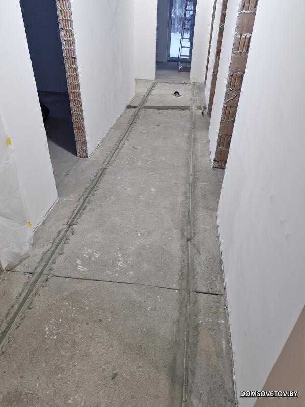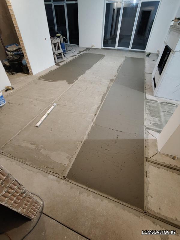 - Стяжка тоже будет в один уровень и где плитка, и где планируется деревянное покрытие. Высота будет варьироваться от 50 до 80мм по результатам предварительных замеров потому как есть перепад по черновому полу. Такая толщина в допусках для стяжки