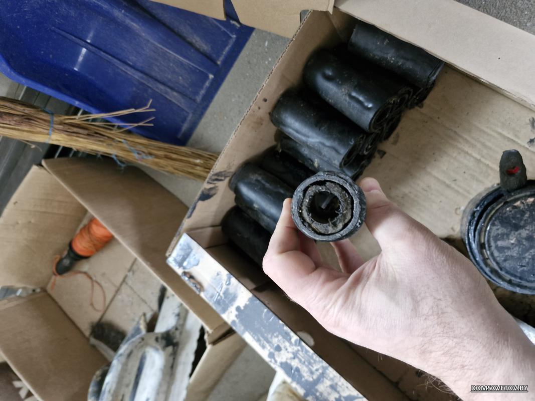 Втулки из 2х труб сделаны диаметром 20мм и 32мм толщиной 3мм. Все покрашено в 3 слоя, обернуто в гидроизоляцию и затем в термоусадку. Задача была чтобы минимизировать люфт во втулке, поэтому опытным путем подобрал нужное уплотнение описанное выше. Опорные шайбы для втулки к стене диаметром 60мм. |