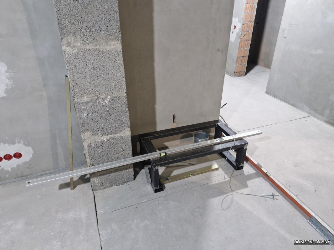 Эскизы это хорошо, но все равно на месте когда делается разметка то вносятся коррективы. Нюансов хватает: стандартный шибер не подходит из-за расположения подвода воздуха из пола + высоты подставки, от дровницы отказался потому что есть отступы которые надо соблюсти и так далее. Но постепенно все вопросы проясняются и процесс идет.
