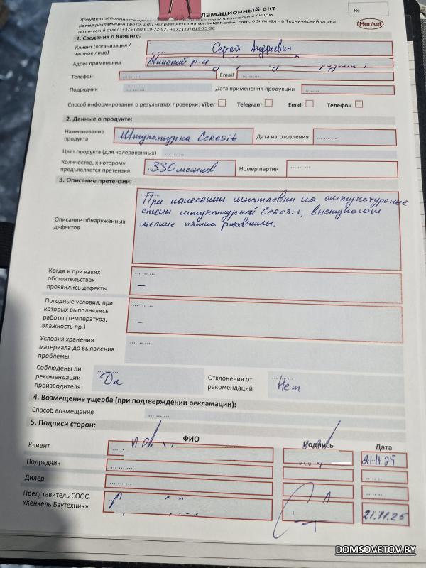 Сегодня была встреча с Ceresit на объекте. По результатам осмотра составили рекламационный акт: